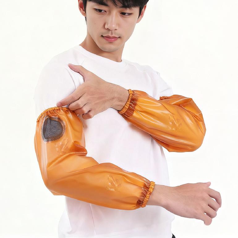 双渔黄色pvc牛筋套袖★25-30丝28丝114g.42*18cm加透气网