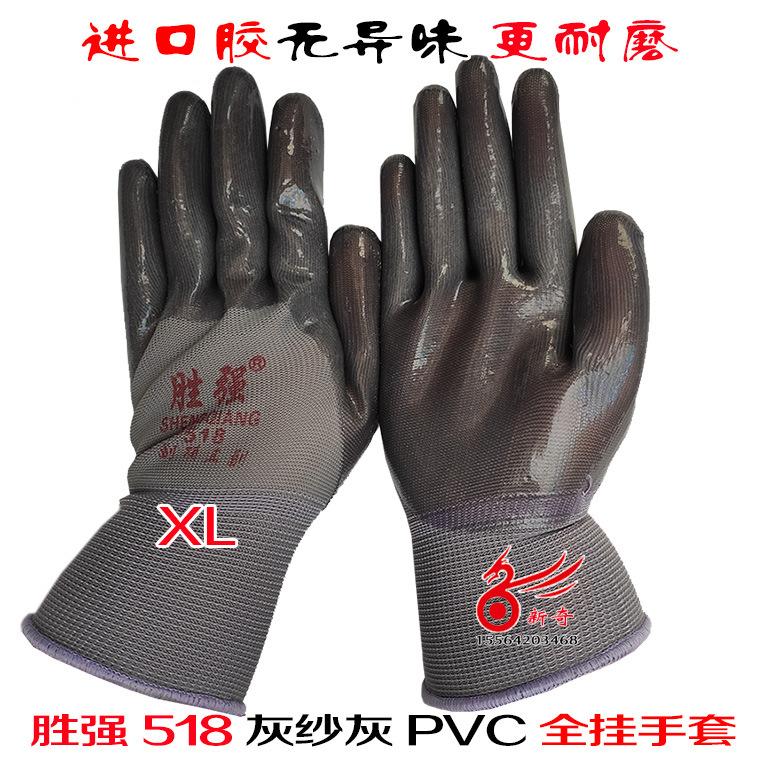 胜强P518灰纱灰pvc全挂手套-进口胶 XL/10#