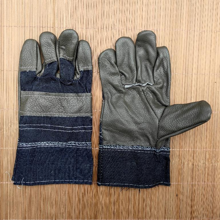短款头层半牛皮分刀(牛仔布手背+接袖)电焊手套-混色