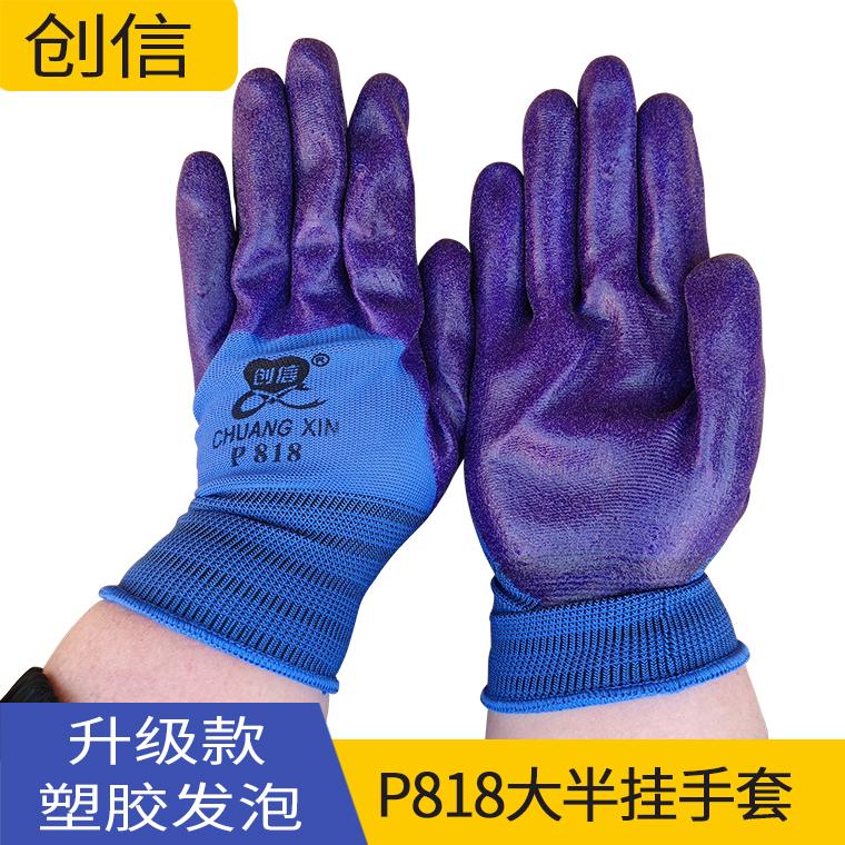 创信P818蓝纱蓝塑胶发泡大半挂手套