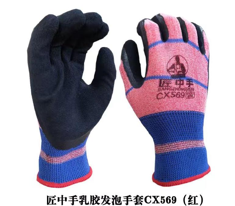 创信★匠中手CX569红纱黑乳胶发泡平挂手套