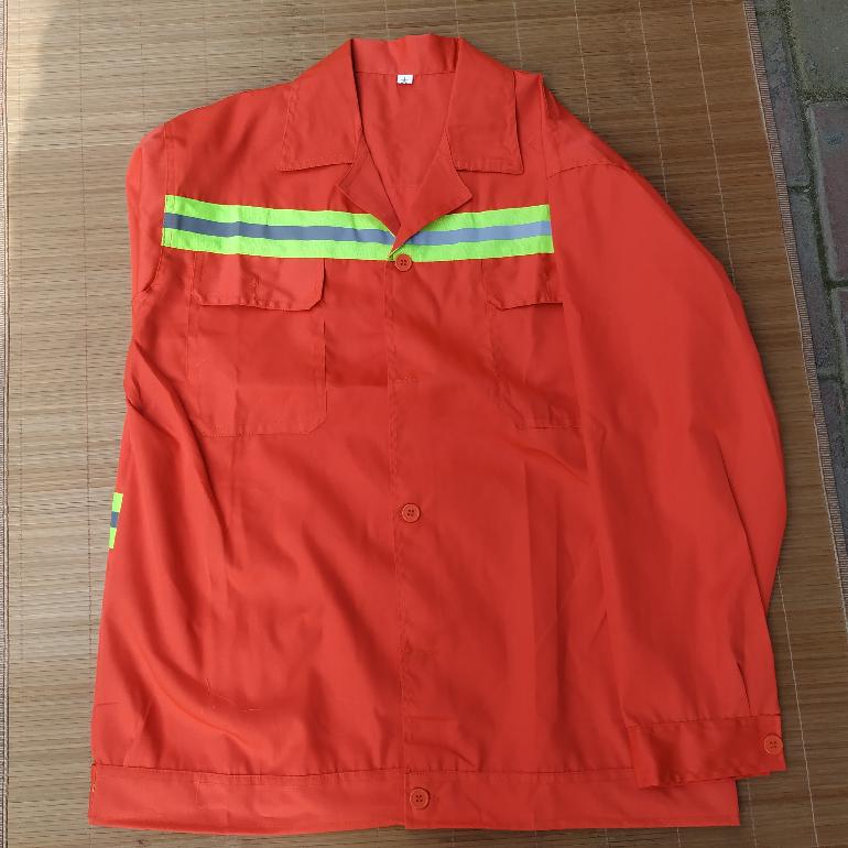 长袖桔色分体套装工作服-春秋装-6535涤棉-单反光条 上部双口袋 小领口