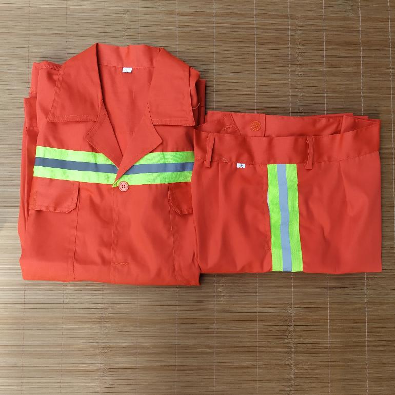 长袖桔色分体套装工作服-春秋装-6535涤棉-单反光条