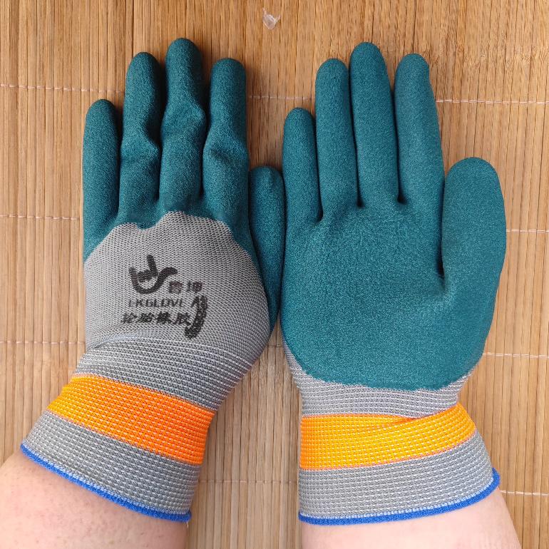 鲁坤尼龙灰纱绿轮胎胶发泡手套