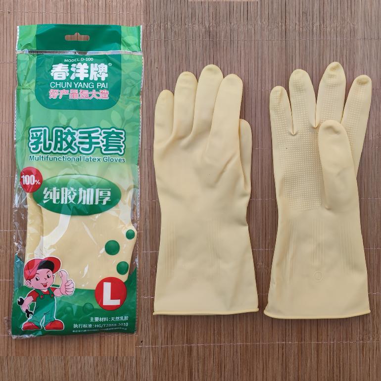 春洋D-100★黄色乳胶手套32cm100g加厚S.M.L.XL
