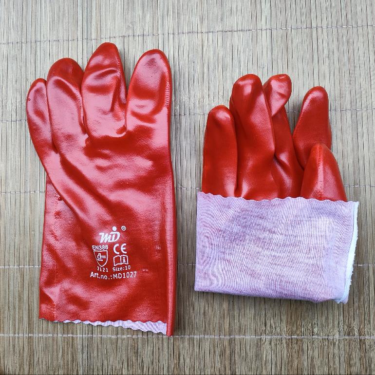 WD红色胶pvc浸塑手套MD1027# 27cm10#码