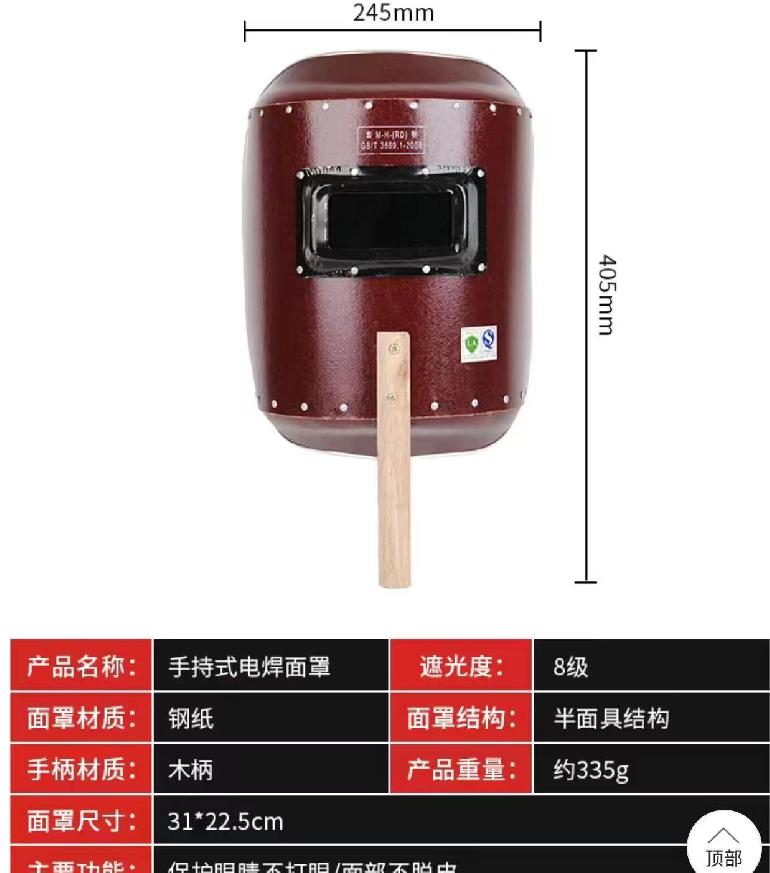 手持式★TC鑫威.A防水耐压款(铁框+铝包边.枣红色)国标★红钢纸电焊面罩