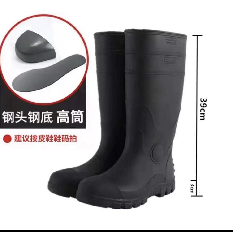 新雨磨砂黑色邦.单39cm高筒36-46#★钢头+钢底★防砸.防穿刺单雨靴黑色鞋底