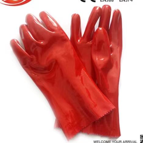 jc105光面浸胶35cm★红色pvc胶+纯棉内衬+直筒袖口 手套184±5g