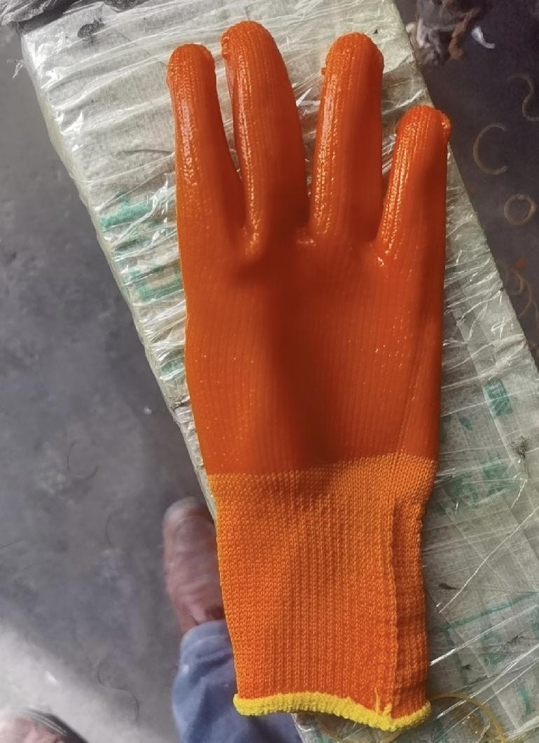 毛圈pvc满挂浸胶手套10#桔纱桔胶
