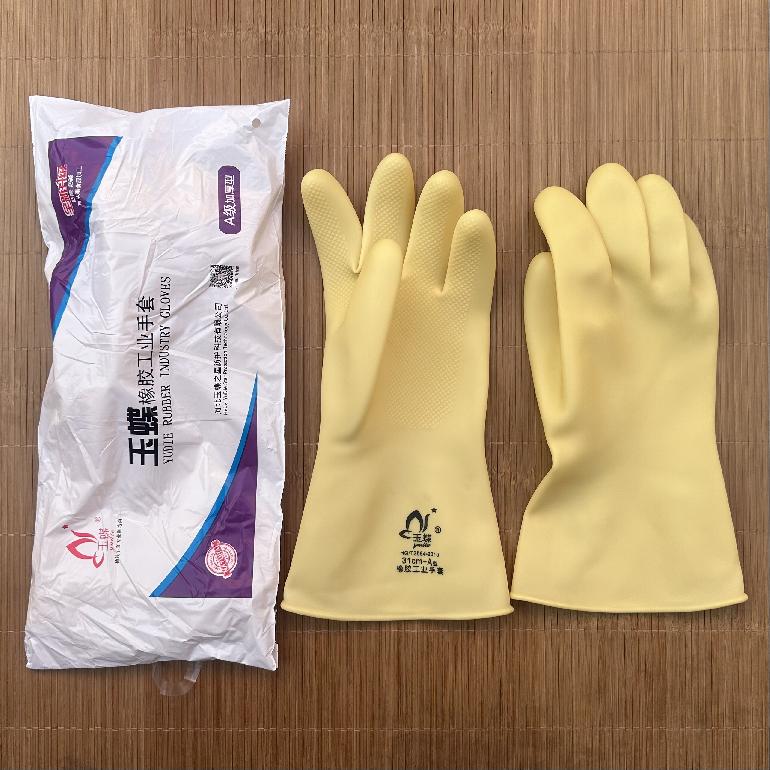 玉蝶31cm-A级加厚型橡胶工业手套 黄色