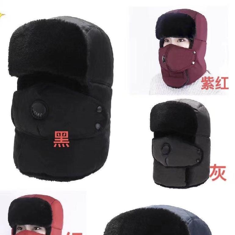 雷锋帽★冬季挡风保暖帽子/内里加绒 /可拆卸棉口罩带呼吸阀