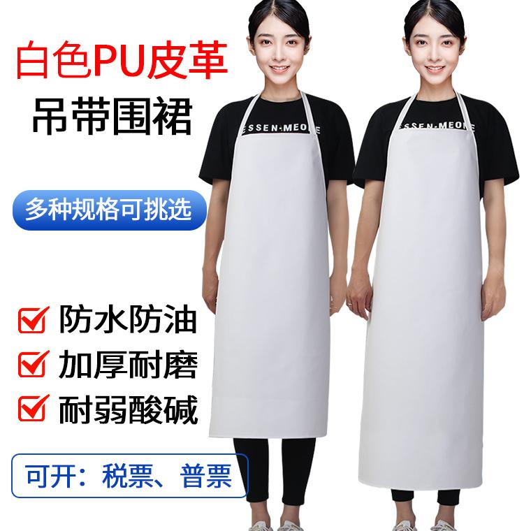白色PU皮革围裙★绒布衬80*115cm系绳吊带★成品76*112cm413g@软皮