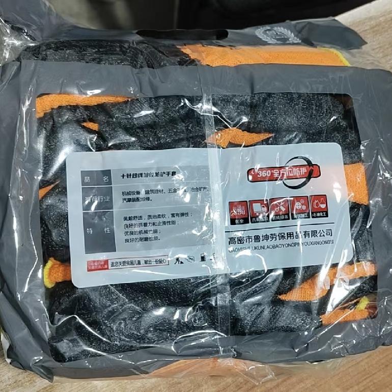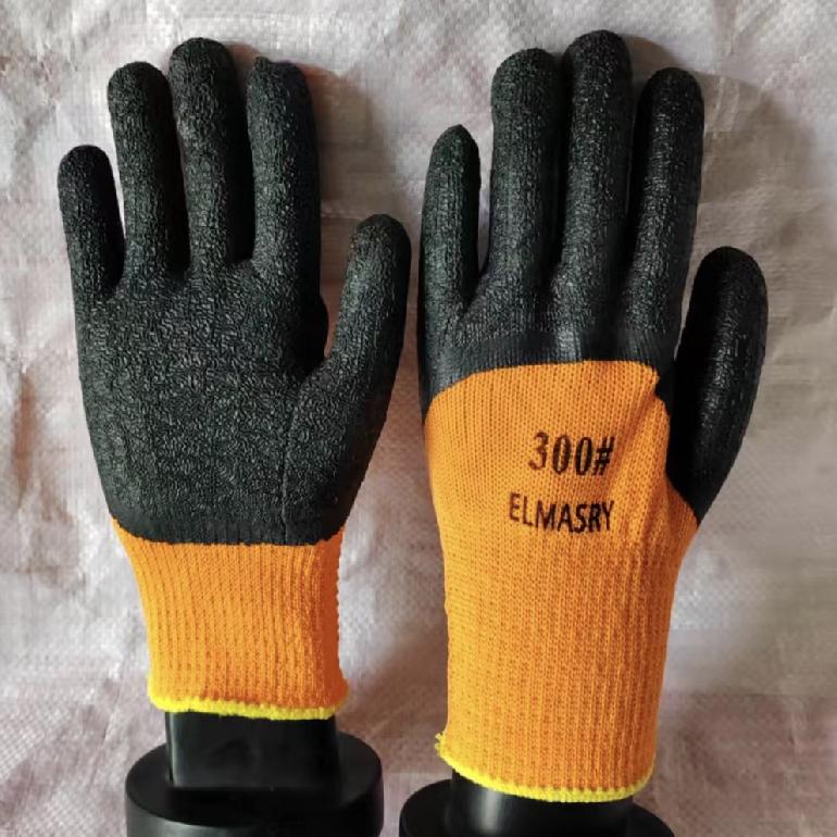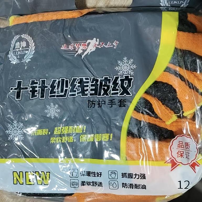 鲁坤桔纱黑毛圈乳胶皱纹全挂手套