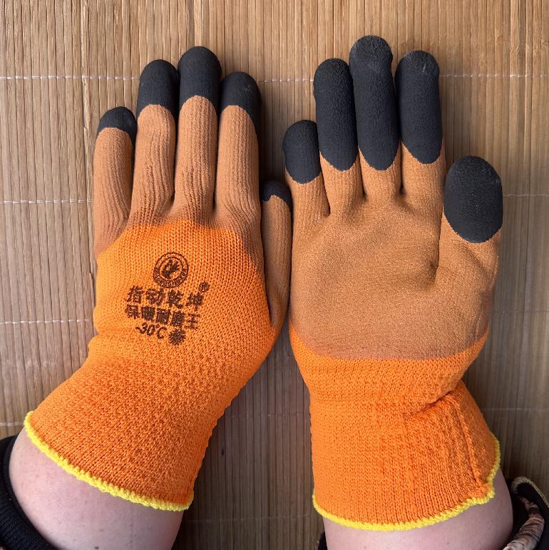 指动乾坤-30℃保暖耐磨王★桔纱毛圈咖啡发泡加指全挂手套 -手指加强 66g