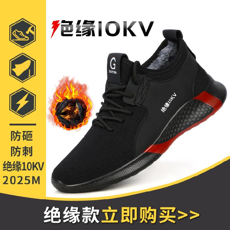 绝缘劳保鞋10KV★2025M防砸.防刺穿.冬季加棉飞针网面 防滑安全防护鞋