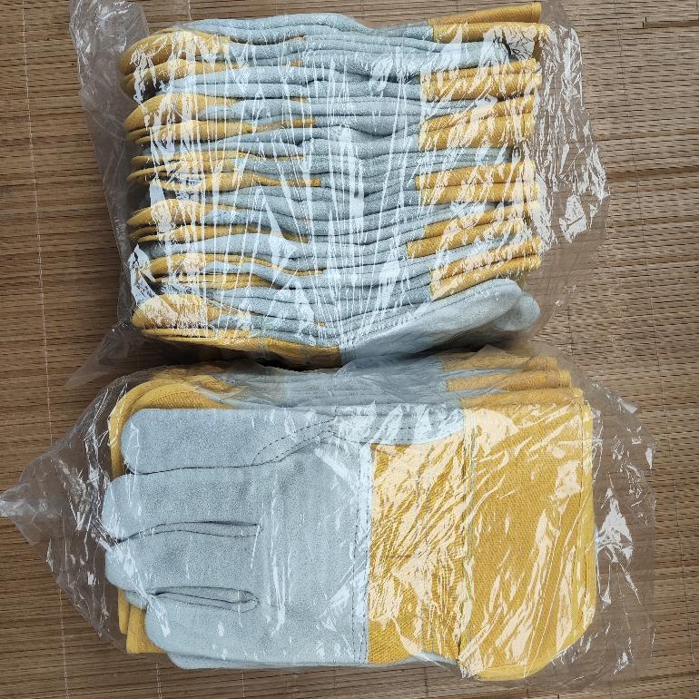 短款大半挂二层半牛皮电焊手套+黄色布手背大半挂