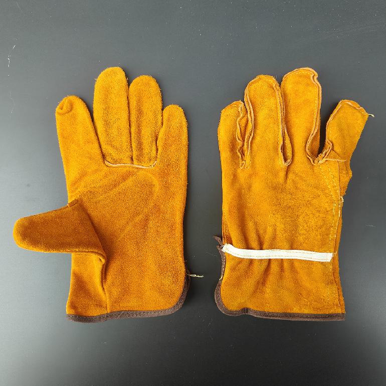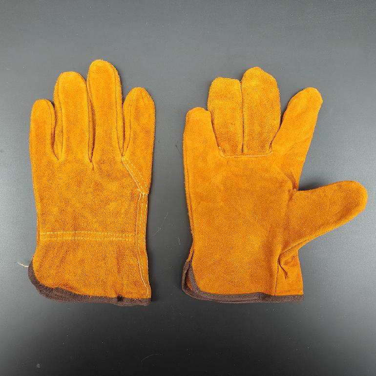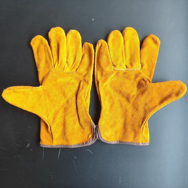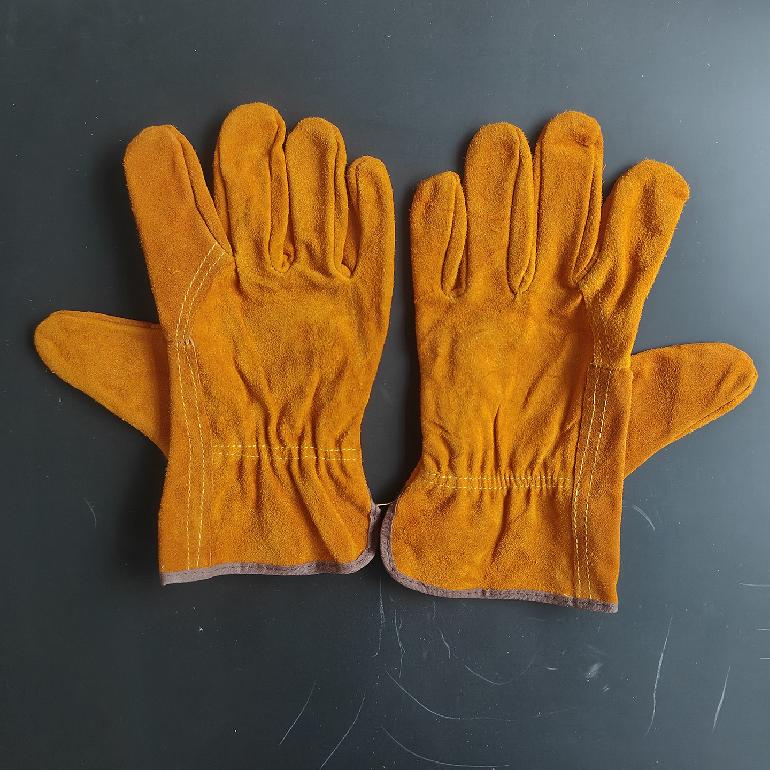 短款25cm★单层大全掌B级黄色二层全牛皮电焊手套(不加衬)