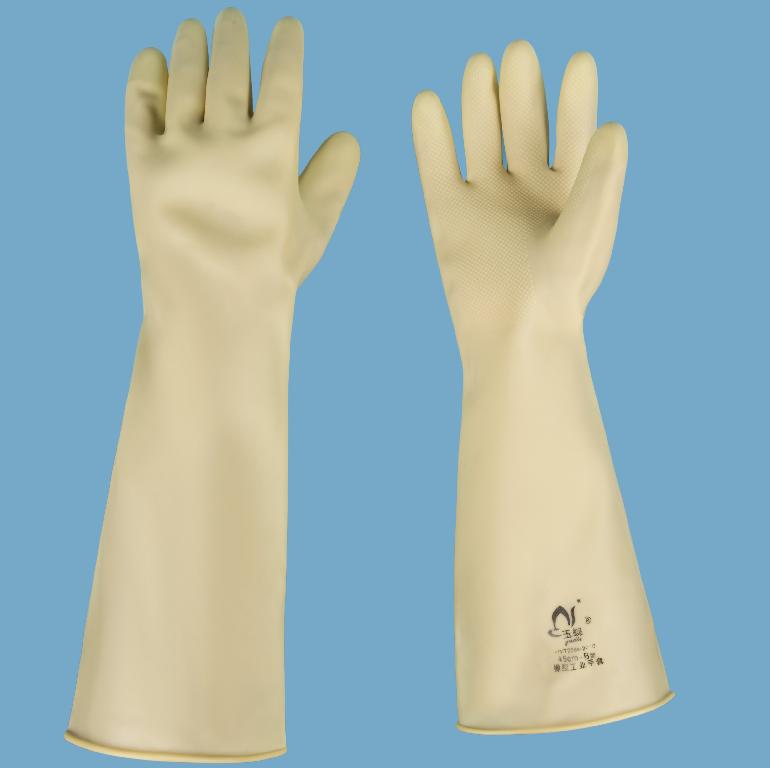 玉蝶 B45cm中厚★耐酸碱★橡胶工业手套-黄色