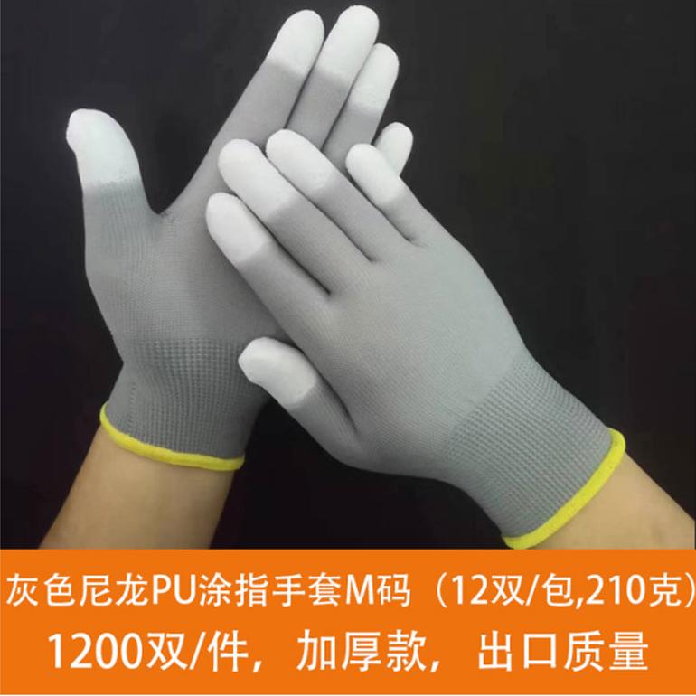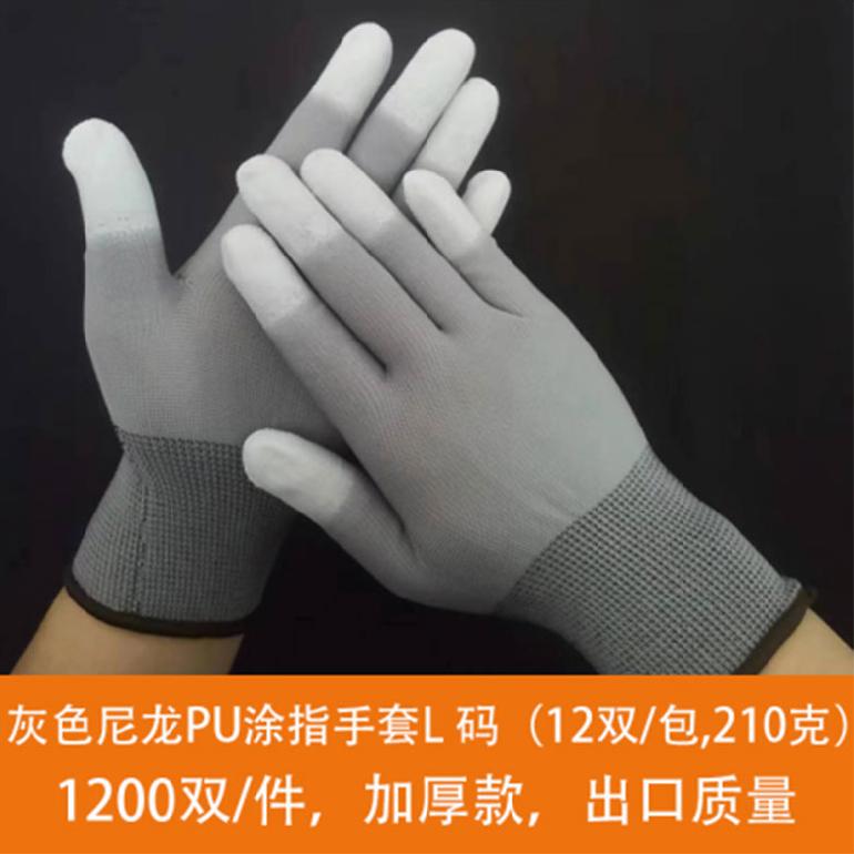 灰色尼龙PU涂指手套★13针尼龙 9# L