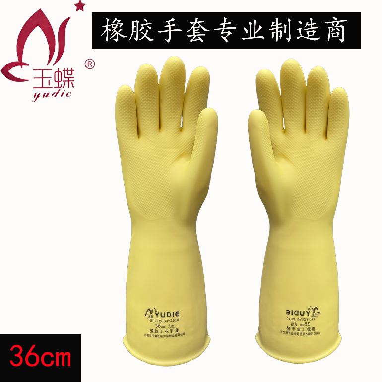 玉蝶A36cm加厚★橡胶工业手套★黄色耐酸碱