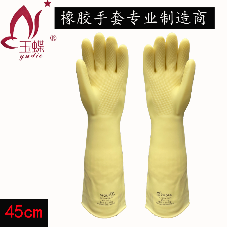 玉蝶A45cm加厚★橡胶工业手套★黄色耐酸碱