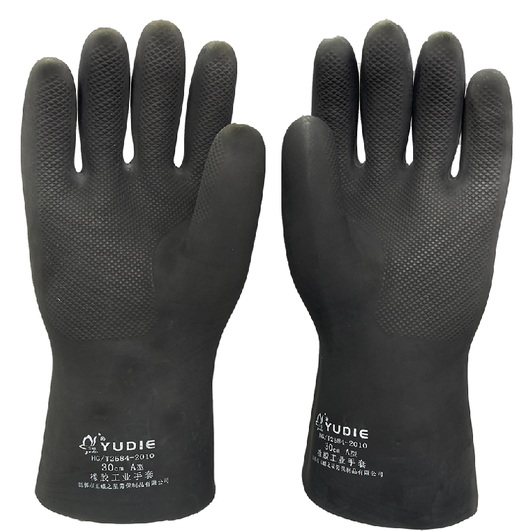 玉蝶A30cm加厚★橡胶工业手套★黑色耐酸碱