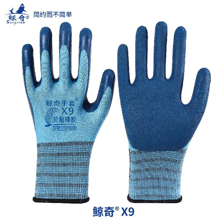 鲸奇X9★轮胎橡胶★蓝纱深蓝胶★高弹发泡平挂浸胶手套8#M