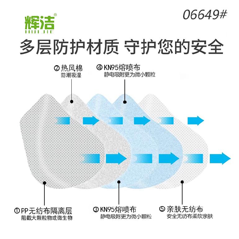 06649# 辉洁T5000-1头戴式.无阀5层★kn95白色口罩★10只/装(无内条), ★ 包装:10只/包 2000只/箱 不含税运: >10个0.25元; >2000个0.22元; >20000个0.2元 网址:http://www.518laobao.com/html/lb_show.php?fid=6649