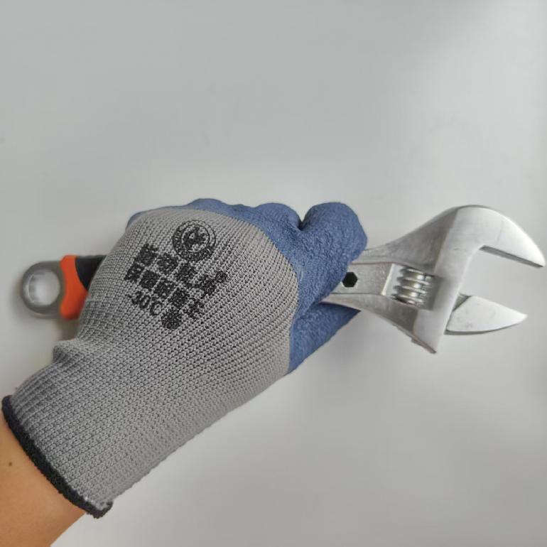 06701#指动乾坤-30℃保暖耐磨王★灰纱蓝毛圈全挂发泡手套