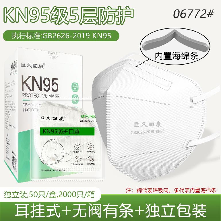 06772#国标巨久回康★耳挂式.无阀5层★kn95白色口罩★50只/盒(有内条)