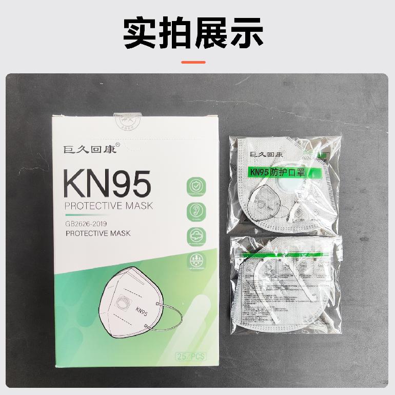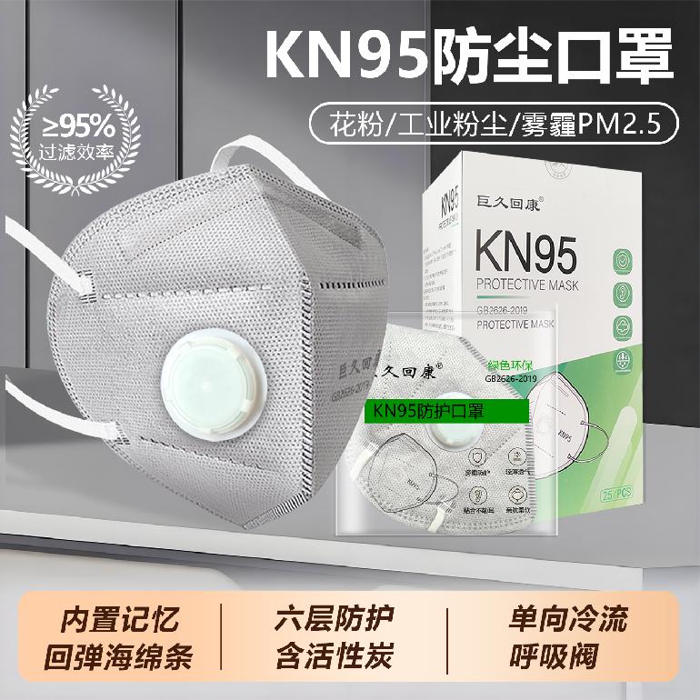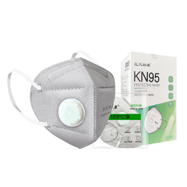 国标.巨久回康★6层.带阀.耳挂式★kn95灰色活性炭口罩★25只/盒(有内条)