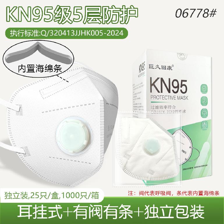 06778#企标巨久回康★耳挂式.带阀5层★kn95白色口罩★25只/盒(有内条)