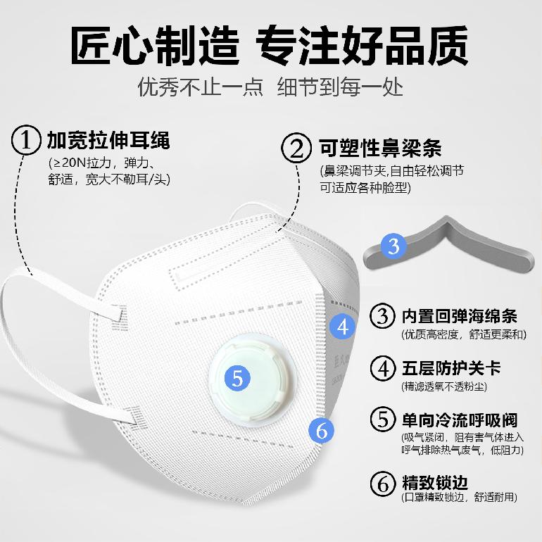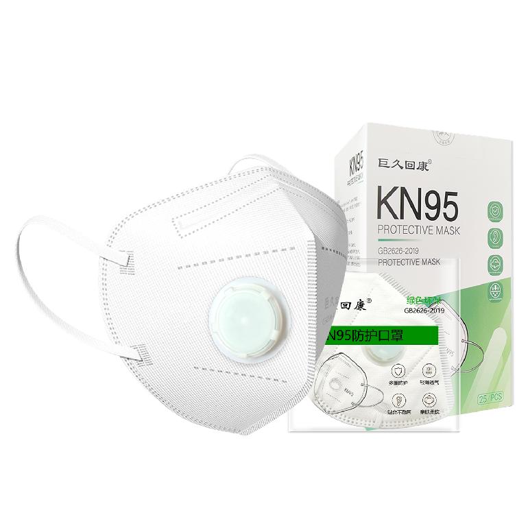 企标.巨久回康★5层.带阀.耳挂式★kn95白色口罩★25只/盒(有内条)