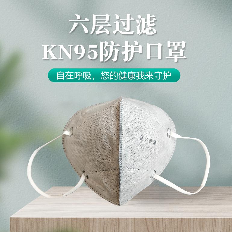 06780#企标巨久回康★耳挂式.无阀6层★kn95灰色活性炭口罩★50只/盒(有内条)
