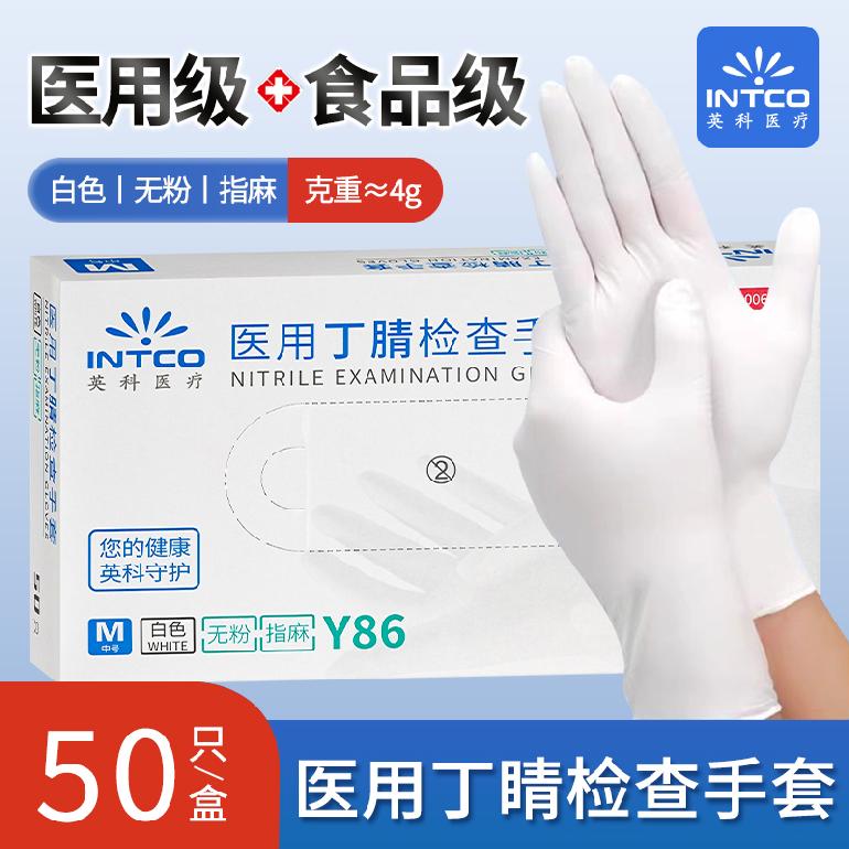 英科Y86医用★盒装9寸4.0g★白色丁腈.一次性检查手套★S.M.L.XL/无粉/指麻