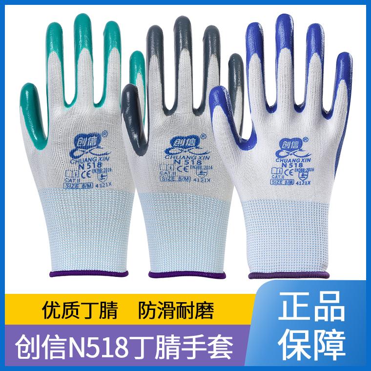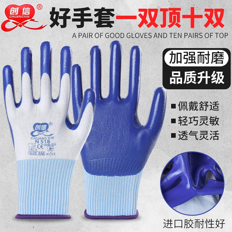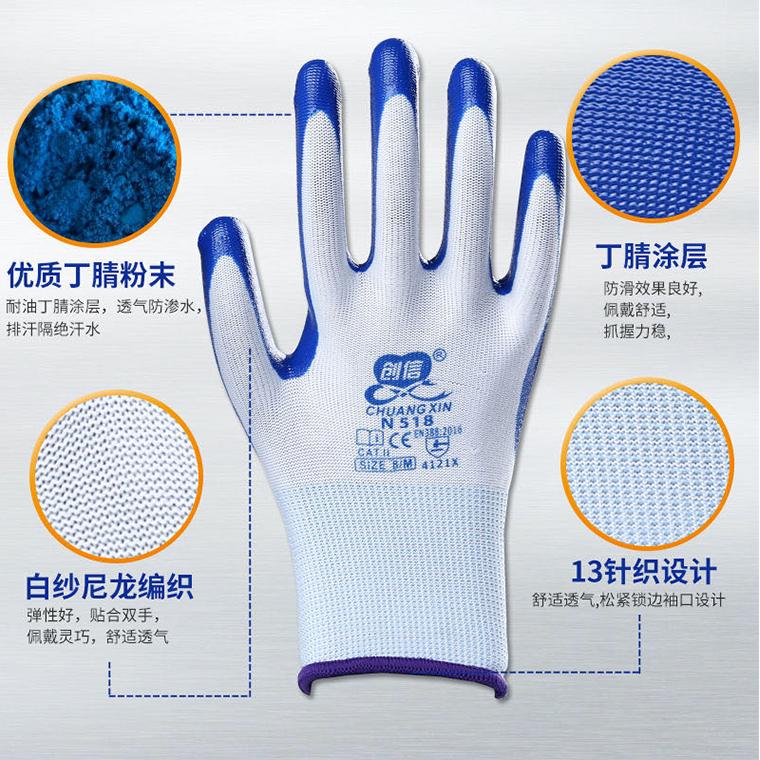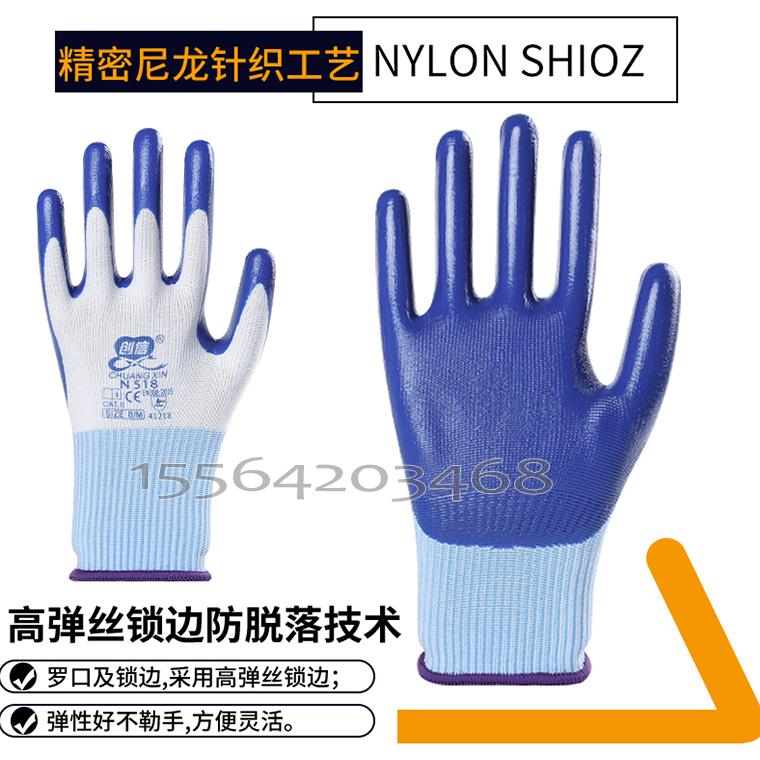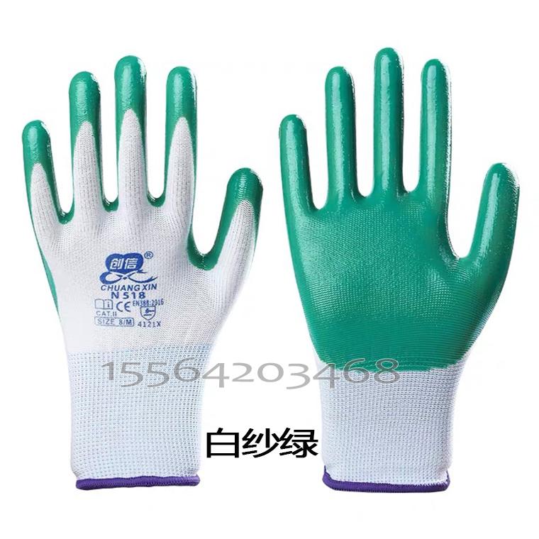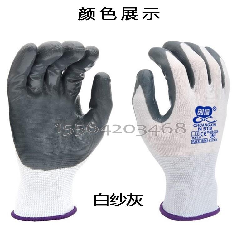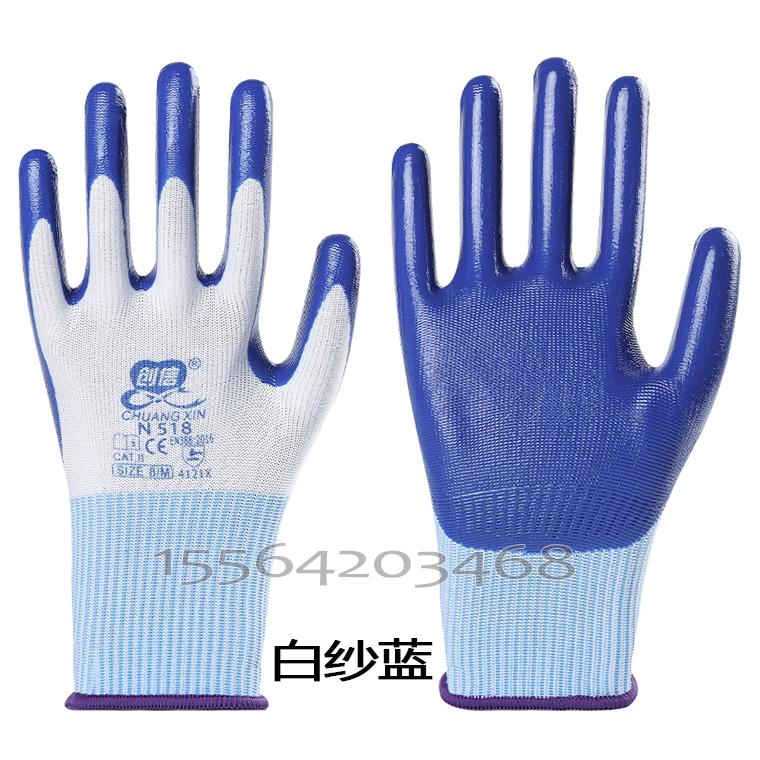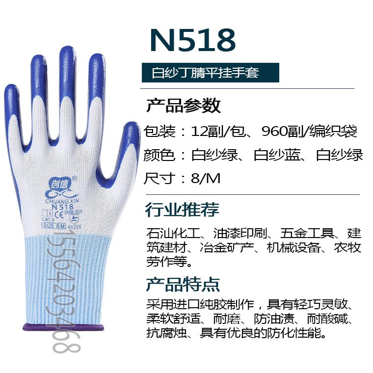 创信N518白纱丁腈平挂手套--白纱蓝/白纱灰/白纱绿