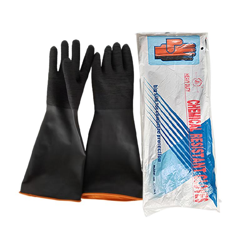 06940#北塔黑色45cm皱纹工业耐酸碱防化防腐蚀手套260g±