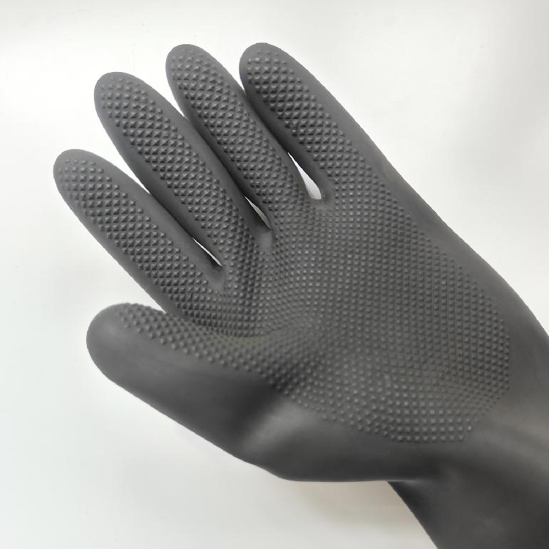 北塔★钻石纹★黑色★55cm工业耐酸碱防化防腐蚀手套280g±