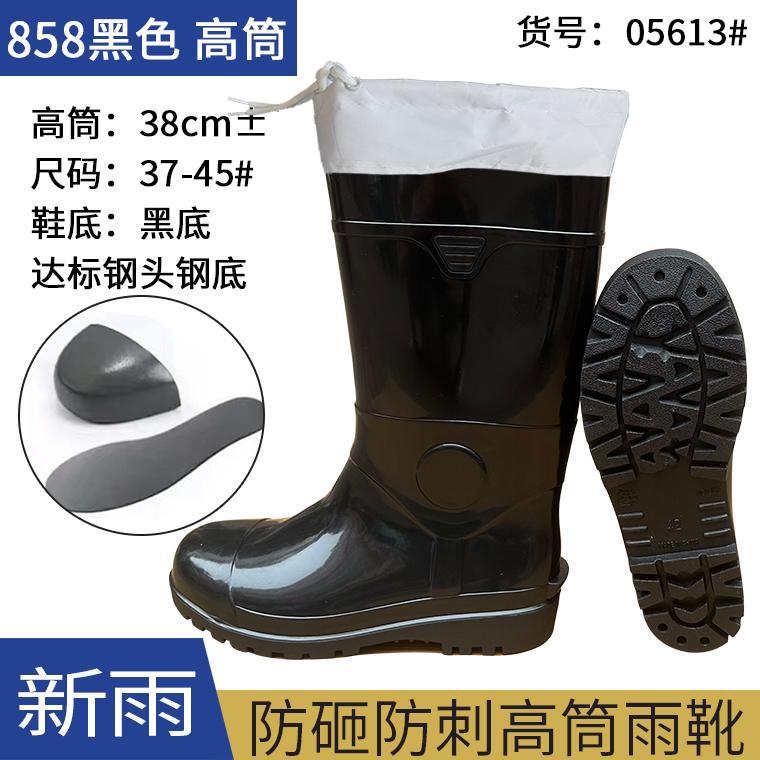 新雨858雨靴38cm高筒.棉★亮光.钢头+钢底★防砸.防穿刺36-46#黑色鞋底 黑色邦