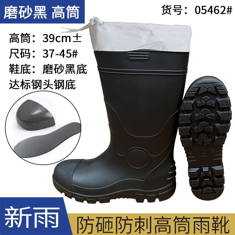 新雨磨砂黑色邦.棉39cm高筒36-46#★钢头+钢底★防砸.防穿刺单雨靴黑色鞋底