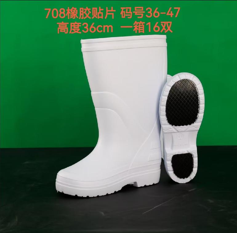 风顺36cm★EVA单雨靴708★36-47#高筒(白邦+黑底)防滑橡胶贴片