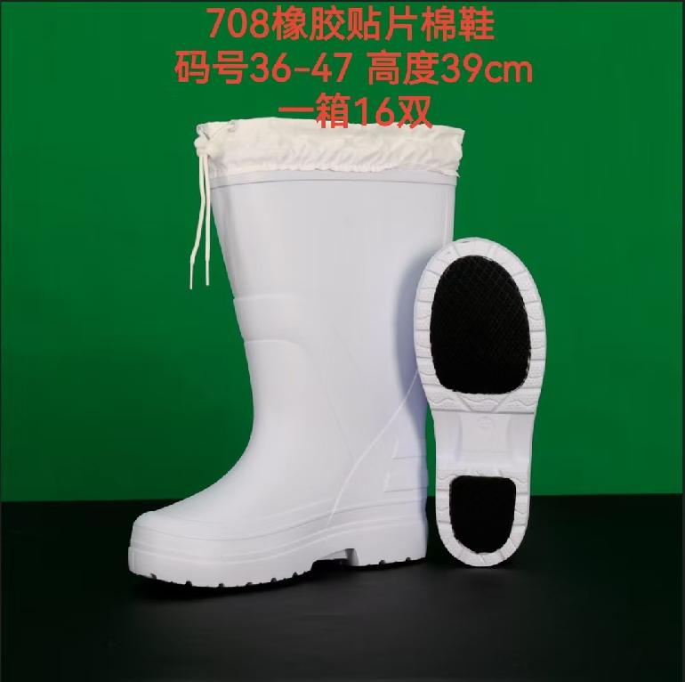 风顺38cm★EVA棉雨靴708★36-47#高筒(白邦+黑底)防滑橡胶贴片