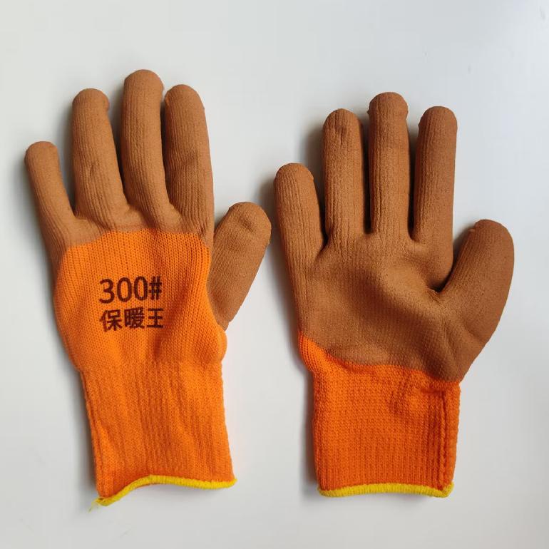 07014#指动乾坤300#★桔纱咖啡胶★毛圈保暖王★发泡全挂手套
