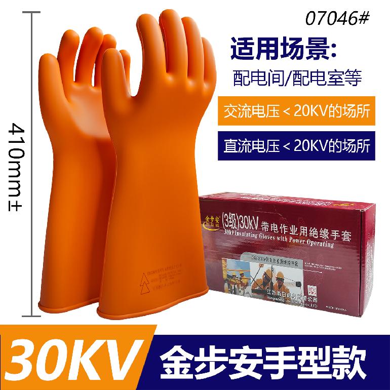 07046#绝缘手套30kv★金步安.弯曲手型.桔色胶