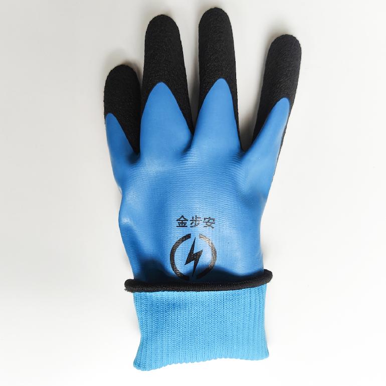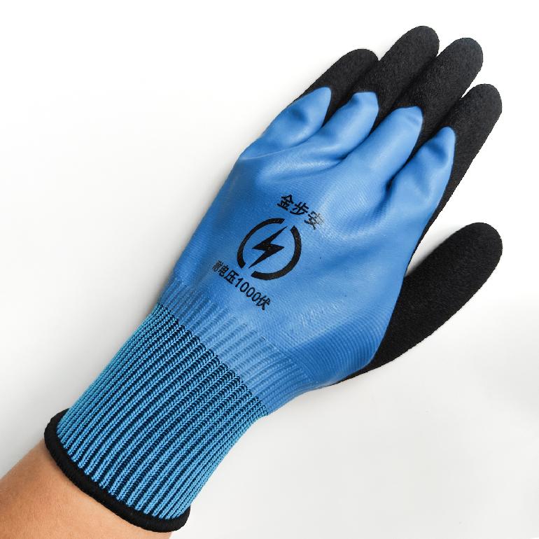 金步安1000V绝缘手套★蓝纱蓝黑胶★双面绝缘双层满挂浸胶手套