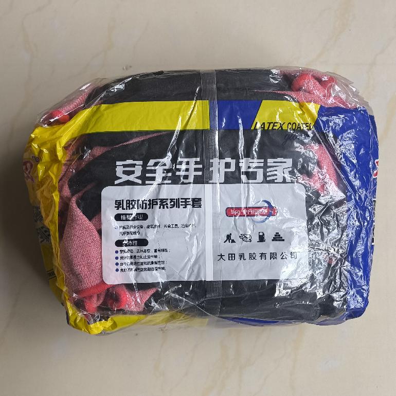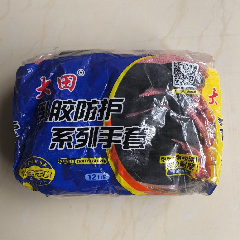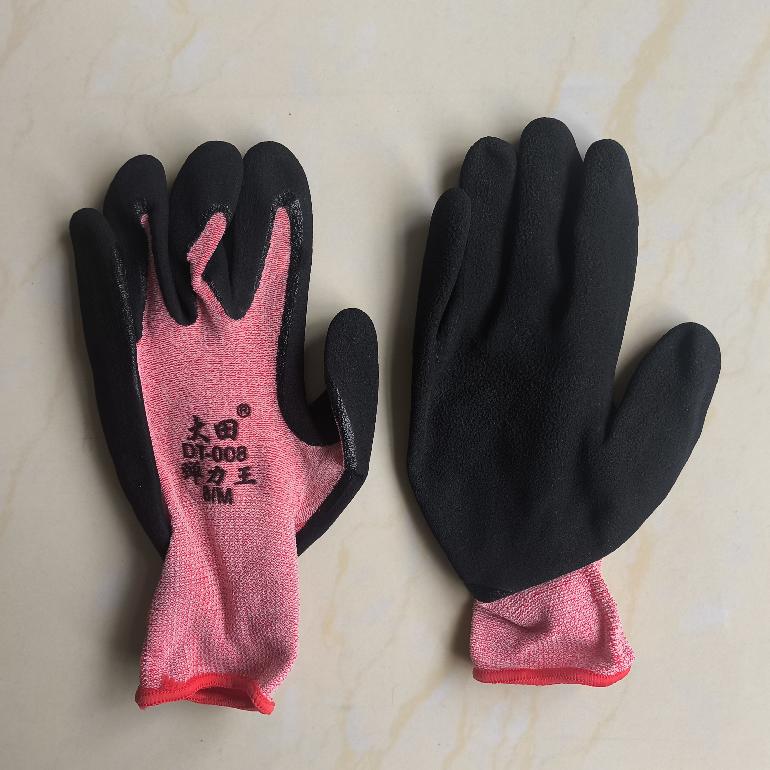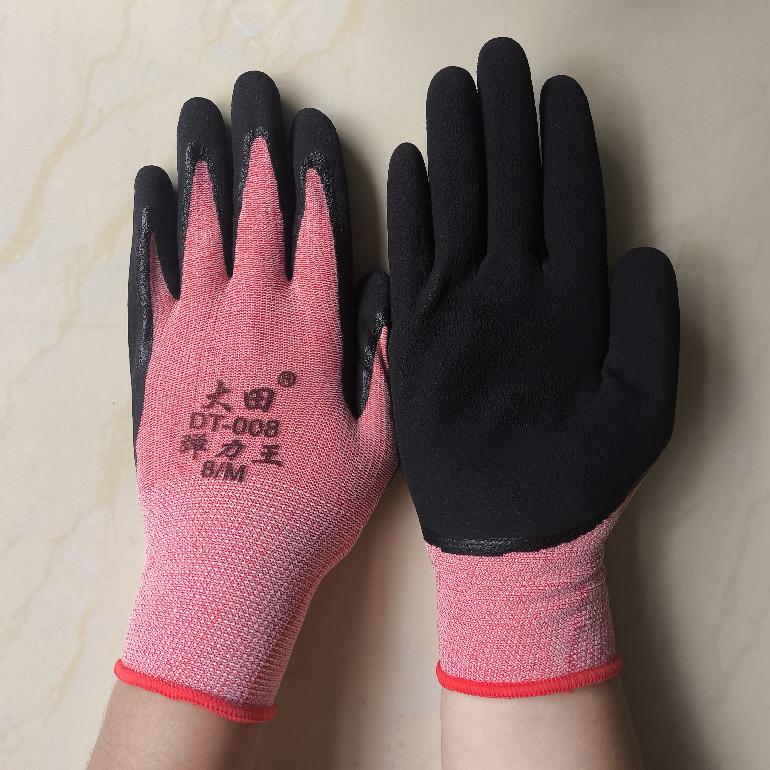 大田DT-008弹力王粉纱黑发泡手套平挂浸胶手套