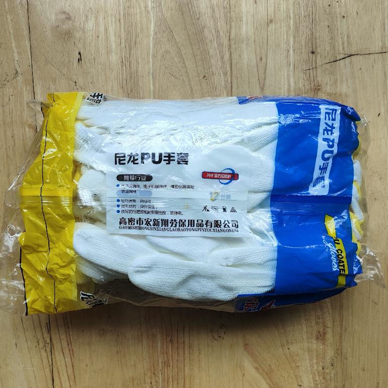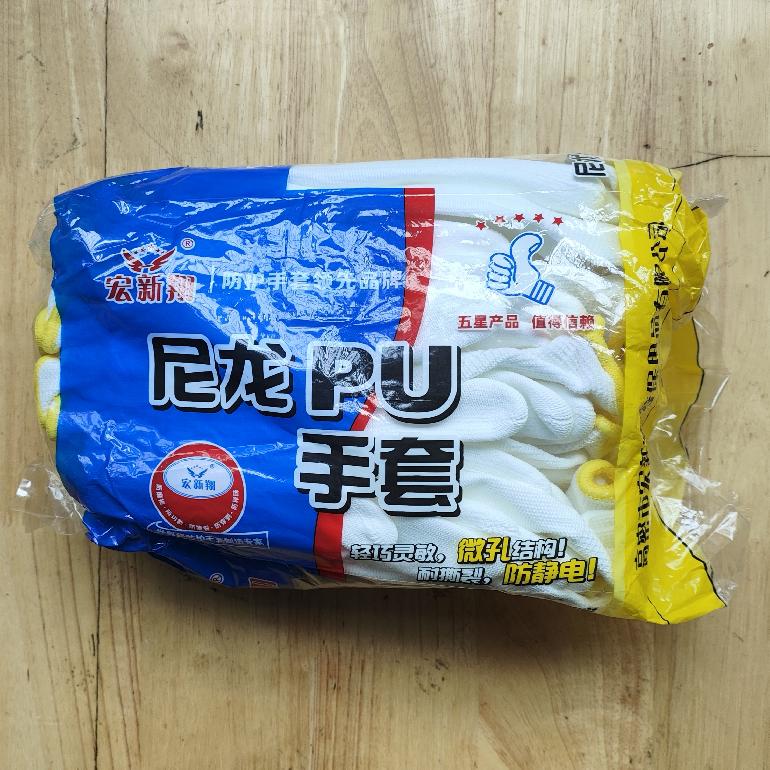 白色pu涂掌手套★宏新翔8# M 黄边 彩袋