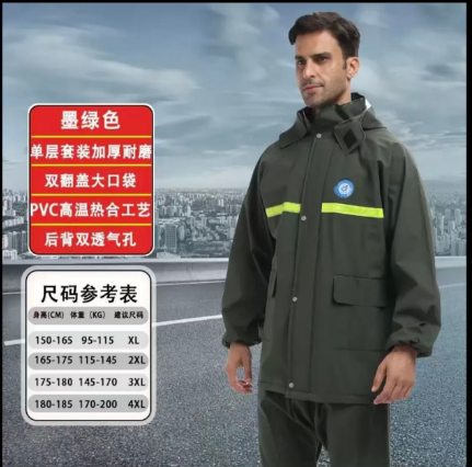 ★墨绿色 雨衣单层套装加厚耐磨 双翻盖大口袋★★