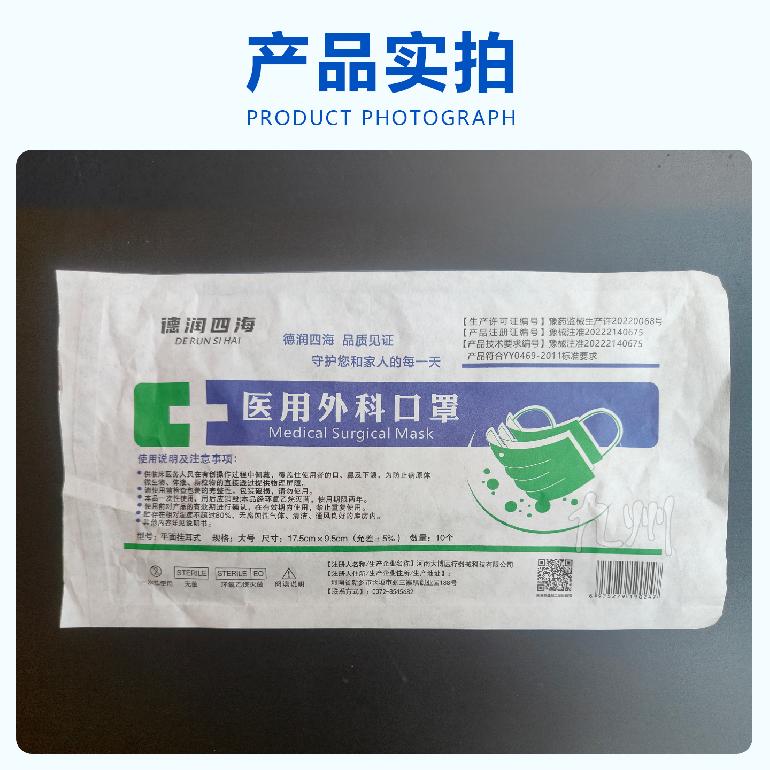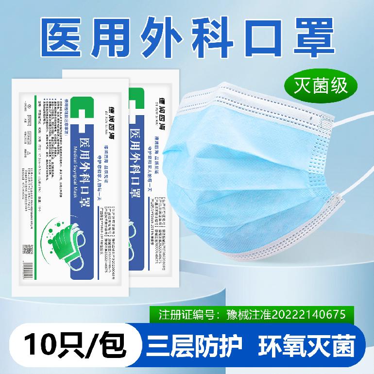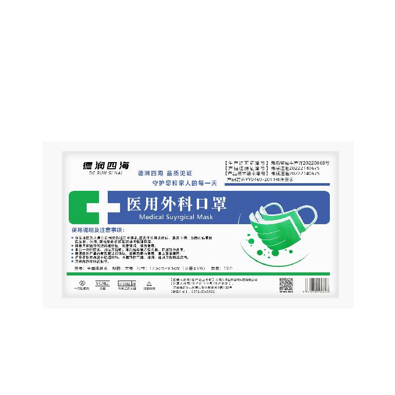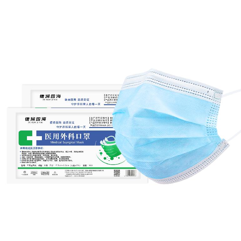 德润四海★一次性医用外科口罩★蓝色三层无纺布+熔喷布10只装.1箱4000个